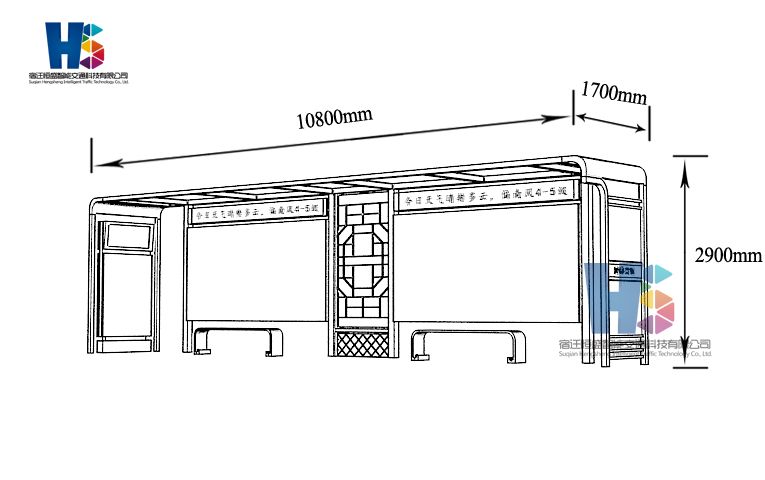 產(chǎn)品外觀 / PRODUCT DETAILS 產(chǎn)品信息 / PRODUCT INFO 【產(chǎn)品名稱】:城市品位候車亭PW14 【產(chǎn)品系列】:城市品位候車亭 【產(chǎn)品型號】:PW14 【產(chǎn)品規(guī)格】:長10800mm 寬1700mm 高2900mm 【產(chǎn)品材質(zhì)】:熱鍍鋅鋼板 【使用年限】:10-15年 【詳情致電】:181-5189-0417、157-5170-8886 備注:產(chǎn)品可根據(jù)用戶需求選用材質(zhì)、顏色及配件,個性化定制。 1、表面采用靜電噴塑(氟碳烤漆/搪瓷處理) 2、頂棚采用100*100*1.5mm、100*150*2mm鍍鋅管,3mm鍍鋅板激光切割件、1.5mm鍍鋅板焊接骨架,鋪1mm鍍鋅板(10mm陽光板) 3、立柱采用150*150*3mm鍍鋅管 4、箱體采用1.5mm鍍鋅板折彎焊接成型,門框采用全玻鋁合金型材,視窗采用6mm鋼化玻璃 5、照明電器采用LED燈粒 產(chǎn)品尺寸 / PRODUCT SIZE 關(guān)于輝盛 / 為社會分擔(dān)責(zé)任,為客戶創(chuàng)造價(jià)值 宿遷輝盛廣告設(shè)備有限公司是一家集設(shè)計(jì)、研發(fā)、生產(chǎn)為一體的城市公共設(shè)施生產(chǎn)型企業(yè)。主要產(chǎn)品有:候車公交亭、公交站臺、閱報(bào)欄、路名牌、垃圾箱、燈箱等市政設(shè)施系列產(chǎn)品和工程配套設(shè)施系列產(chǎn)品,現(xiàn)有高級技師30多人,高級職稱設(shè)計(jì)人員10人,是一家具有自主開發(fā)和設(shè)計(jì)能力的以公交亭、智能公交為主導(dǎo)的綜合性城市公共設(shè)施制造企業(yè)。為了進(jìn)一步改善生產(chǎn)工藝,提高產(chǎn)品質(zhì)量,公司引進(jìn)了先進(jìn)生產(chǎn)設(shè)備,包括立臥式加工中心,工業(yè)涂裝流水線,CNC車床,線切割機(jī),大型數(shù)控板機(jī),數(shù)控折邊機(jī),數(shù)控沖孔機(jī)床,大型折彎機(jī)等。公司還專門成立了產(chǎn)品研發(fā)部門,現(xiàn)每年自主開發(fā)或應(yīng)客戶要求設(shè)計(jì)推出多款新產(chǎn)品。 榮譽(yù)資質(zhì) / ENTERPRISE HONOR