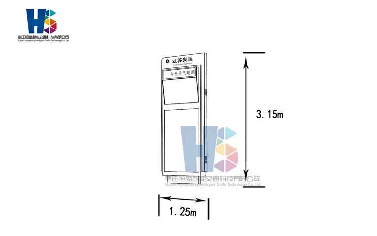 產(chǎn)品外觀 / PRODUCT DETAILS 產(chǎn)品信息 / PRODUCT INFO 【產(chǎn)品名稱】:電子站牌ZP3-1 【產(chǎn)品系列】:電子站牌 【產(chǎn)品型號】:ZP3-1 【產(chǎn)品規(guī)格】:長1250mm 高3150mm 【產(chǎn)品材質(zhì)】:熱鍍鋅鋼板 【使用年限】:10-15年 【詳情致電】:181-5189-0417、157-5170-8886 備注:產(chǎn)品可根據(jù)用戶需求選用材質(zhì)、顏色及配件,個性化定制。 1、表面采用靜電噴塑(氟碳烤漆/搪瓷處理) 2、頂棚采用100*100*1.5mm、100*150*2mm鍍鋅管,3mm鍍鋅板激光切割件、1.5mm鍍鋅板焊接骨架,鋪1mm鍍鋅板(10mm陽光板) 3、立柱采用150*150*3mm鍍鋅管 4、箱體采用1.5mm鍍鋅板折彎焊接成型,門框采用全玻鋁合金型材,視窗采用6mm鋼化玻璃 5、照明電器采用LED燈粒 產(chǎn)品尺寸 / PRODUCT SIZE 關(guān)于輝盛 / 為社會分擔(dān)責(zé)任,為客戶創(chuàng)造價值 宿遷輝盛廣告設(shè)備有限公司是一家集設(shè)計、研發(fā)、生產(chǎn)為一體的城市公共設(shè)施生產(chǎn)型企業(yè)。主要產(chǎn)品有:候車公交亭、公交站臺、閱報欄、路名牌、垃圾箱、燈箱等市政設(shè)施系列產(chǎn)品和工程配套設(shè)施系列產(chǎn)品,現(xiàn)有高級技師30多人,高級職稱設(shè)計人員10人,是一家具有自主開發(fā)和設(shè)計能力的以公交亭、智能公交為主導(dǎo)的綜合性城市公共設(shè)施制造企業(yè)。為了進一步改善生產(chǎn)工藝,提高產(chǎn)品質(zhì)量,公司引進了先進生產(chǎn)設(shè)備,包括立臥式加工中心,工業(yè)涂裝流水線,CNC車床,線切割機,大型數(shù)控板機,數(shù)控折邊機,數(shù)控沖孔機床,大型折彎機等。公司還專門成立了產(chǎn)品研發(fā)部門,現(xiàn)每年自主開發(fā)或應(yīng)客戶要求設(shè)計推出多款新產(chǎn)品。 榮譽資質(zhì) / ENTERPRISE HONOR