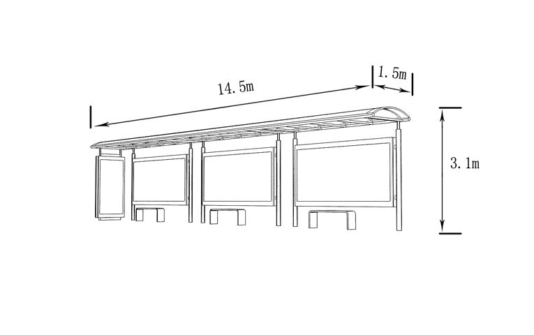 產(chǎn)品外觀 / PRODUCT DETAILS 產(chǎn)品信息 / PRODUCT INFO 【產(chǎn)品名稱】:個(gè)性定制候車亭DZ6 【產(chǎn)品系列】:個(gè)性定制候車亭 【產(chǎn)品型號(hào)】:DZ6 【產(chǎn)品規(guī)格】:長(zhǎng)10800mm 寬1700mm 高2900mm 【產(chǎn)品材質(zhì)】:熱鍍鋅鋼板 【使用年限】:10-15年 【詳情致電】:181-5189-0417、157-5170-8886 備注:產(chǎn)品可根據(jù)用戶需求選用材質(zhì)、顏色及配件,個(gè)性化定制。 1、表面采用靜電噴塑(氟碳烤漆/搪瓷處理) 2、頂棚采用100*100*1.5mm、100*150*2mm鍍鋅管,3mm鍍鋅板激光切割件、1.5mm鍍鋅板焊接骨架,鋪1mm鍍鋅板(10mm陽光板) 3、立柱采用150*150*3mm鍍鋅管 4、箱體采用1.5mm鍍鋅板折彎焊接成型,門框采用全玻鋁合金型材,視窗采用6mm鋼化玻璃 5、照明電器采用LED燈粒 產(chǎn)品尺寸 / PRODUCT SIZE 關(guān)于輝盛 / 為社會(huì)分擔(dān)責(zé)任,為客戶創(chuàng)造價(jià)值 宿遷輝盛廣告設(shè)備有限公司是一家集設(shè)計(jì)、研發(fā)、生產(chǎn)為一體的城市公共設(shè)施生產(chǎn)型企業(yè)。主要產(chǎn)品有:候車公交亭、公交站臺(tái)、閱報(bào)欄、路名牌、垃圾箱、燈箱等市政設(shè)施系列產(chǎn)品和工程配套設(shè)施系列產(chǎn)品,現(xiàn)有高級(jí)技師30多人,高級(jí)職稱設(shè)計(jì)人員10人,是一家具有自主開發(fā)和設(shè)計(jì)能力的以公交亭、智能公交為主導(dǎo)的綜合性城市公共設(shè)施制造企業(yè)。為了進(jìn)一步改善生產(chǎn)工藝,提高產(chǎn)品質(zhì)量,公司引進(jìn)了先進(jìn)生產(chǎn)設(shè)備,包括立臥式加工中心,工業(yè)涂裝流水線,CNC車床,線切割機(jī),大型數(shù)控板機(jī),數(shù)控折邊機(jī),數(shù)控沖孔機(jī)床,大型折彎?rùn)C(jī)等。公司還專門成立了產(chǎn)品研發(fā)部門,現(xiàn)每年自主開發(fā)或應(yīng)客戶要求設(shè)計(jì)推出多款新產(chǎn)品。 榮譽(yù)資質(zhì) / ENTERPRISE HONOR