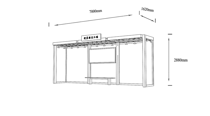 產(chǎn)品外觀 / PRODUCT DETAILS 產(chǎn)品信息 / PRODUCT INFO 【產(chǎn)品名稱】:個(gè)性定制候車亭DZ1 【產(chǎn)品系列】:個(gè)性定制候車亭 【產(chǎn)品型號(hào)】:DZ1 【產(chǎn)品規(guī)格】:長(zhǎng)10800mm 寬1700mm 高2900mm 【產(chǎn)品材質(zhì)】:熱鍍鋅鋼板 【使用年限】:10-15年 【詳情致電】:181-5189-0417、157-5170-8886 備注:產(chǎn)品可根據(jù)用戶需求選用材質(zhì)、顏色及配件,個(gè)性化定制。 1、表面采用靜電噴塑(氟碳烤漆/搪瓷處理) 2、頂棚采用100*100*1.5mm、100*150*2mm鍍鋅管,3mm鍍鋅板激光切割件、1.5mm鍍鋅板焊接骨架,鋪1mm鍍鋅板(10mm陽光板) 3、立柱采用150*150*3mm鍍鋅管 4、箱體采用1.5mm鍍鋅板折彎焊接成型,門框采用全玻鋁合金型材,視窗采用6mm鋼化玻璃 5、照明電器采用LED燈粒 產(chǎn)品尺寸 / PRODUCT SIZE 關(guān)于輝盛 / 為社會(huì)分擔(dān)責(zé)任,為客戶創(chuàng)造價(jià)值 宿遷輝盛廣告設(shè)備有限公司是一家集設(shè)計(jì)、研發(fā)、生產(chǎn)為一體的城市公共設(shè)施生產(chǎn)型企業(yè)。主要產(chǎn)品有:候車公交亭、公交站臺(tái)、閱報(bào)欄、路名牌、垃圾箱、燈箱等市政設(shè)施系列產(chǎn)品和工程配套設(shè)施系列產(chǎn)品,現(xiàn)有高級(jí)技師30多人,高級(jí)職稱設(shè)計(jì)人員10人,是一家具有自主開發(fā)和設(shè)計(jì)能力的以公交亭、智能公交為主導(dǎo)的綜合性城市公共設(shè)施制造企業(yè)。為了進(jìn)一步改善生產(chǎn)工藝,提高產(chǎn)品質(zhì)量,公司引進(jìn)了先進(jìn)生產(chǎn)設(shè)備,包括立臥式加工中心,工業(yè)涂裝流水線,CNC車床,線切割機(jī),大型數(shù)控板機(jī),數(shù)控折邊機(jī),數(shù)控沖孔機(jī)床,大型折彎?rùn)C(jī)等。公司還專門成立了產(chǎn)品研發(fā)部門,現(xiàn)每年自主開發(fā)或應(yīng)客戶要求設(shè)計(jì)推出多款新產(chǎn)品。 榮譽(yù)資質(zhì) / ENTERPRISE HONOR