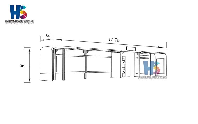 產(chǎn)品外觀 / PRODUCT DETAILS 產(chǎn)品信息 / PRODUCT INFO 【產(chǎn)品名稱】:歐美風(fēng)范候車亭OM5 【產(chǎn)品系列】:歐美風(fēng)范候車亭 【產(chǎn)品型號(hào)】:OM5 【產(chǎn)品規(guī)格】:長(zhǎng)10800mm 寬1700mm 高2900mm 【產(chǎn)品材質(zhì)】:熱鍍鋅鋼板 【使用年限】:10-15年 【詳情致電】:181-5189-0417、157-5170-8886 備注:產(chǎn)品可根據(jù)用戶需求選用材質(zhì)、顏色及配件,個(gè)性化定制。 1、表面采用靜電噴塑(氟碳烤漆/搪瓷處理) 2、頂棚采用100*100*1.5mm、100*150*2mm鍍鋅管,3mm鍍鋅板激光切割件、1.5mm鍍鋅板焊接骨架,鋪1mm鍍鋅板(10mm陽光板) 3、立柱采用150*150*3mm鍍鋅管 4、箱體采用1.5mm鍍鋅板折彎焊接成型,門框采用全玻鋁合金型材,視窗采用6mm鋼化玻璃 5、照明電器采用LED燈粒 產(chǎn)品尺寸 / PRODUCT SIZE 關(guān)于輝盛 / 為社會(huì)分擔(dān)責(zé)任,為客戶創(chuàng)造價(jià)值 宿遷輝盛廣告設(shè)備有限公司是一家集設(shè)計(jì)、研發(fā)、生產(chǎn)為一體的城市公共設(shè)施生產(chǎn)型企業(yè)。主要產(chǎn)品有:候車公交亭、公交站臺(tái)、閱報(bào)欄、路名牌、垃圾箱、燈箱等市政設(shè)施系列產(chǎn)品和工程配套設(shè)施系列產(chǎn)品,現(xiàn)有高級(jí)技師30多人,高級(jí)職稱設(shè)計(jì)人員10人,是一家具有自主開發(fā)和設(shè)計(jì)能力的以公交亭、智能公交為主導(dǎo)的綜合性城市公共設(shè)施制造企業(yè)。為了進(jìn)一步改善生產(chǎn)工藝,提高產(chǎn)品質(zhì)量,公司引進(jìn)了先進(jìn)生產(chǎn)設(shè)備,包括立臥式加工中心,工業(yè)涂裝流水線,CNC車床,線切割機(jī),大型數(shù)控板機(jī),數(shù)控折邊機(jī),數(shù)控沖孔機(jī)床,大型折彎?rùn)C(jī)等。公司還專門成立了產(chǎn)品研發(fā)部門,現(xiàn)每年自主開發(fā)或應(yīng)客戶要求設(shè)計(jì)推出多款新產(chǎn)品。 榮譽(yù)資質(zhì) / ENTERPRISE HONOR