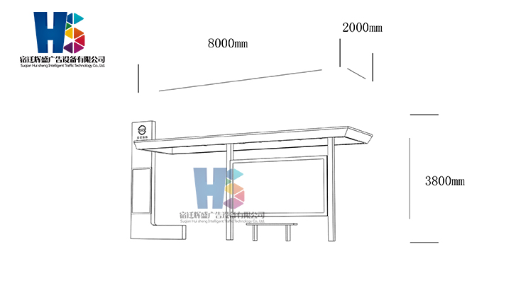 產(chǎn)品外觀 / PRODUCT DETAILS 產(chǎn)品信息 / PRODUCT INFO 【產(chǎn)品名稱】:新款候車亭HS74 【產(chǎn)品系列】:新款候車亭 【產(chǎn)品型號】:HS74 【產(chǎn)品規(guī)格】:長8000mm 寬2000mm 高3800mm 【產(chǎn)品材質(zhì)】:熱鍍鋅鋼板 【使用年限】:10-15年 【詳情致電】:181-5189-0417、157-5170-8886 備注:產(chǎn)品可根據(jù)用戶需求選用材質(zhì)、顏色及配件,個性化定制。 1、表面采用靜電噴塑(氟碳烤漆/搪瓷處理) 2、頂棚采用100*100*1.5mm、100*150*2mm鍍鋅管,3mm鍍鋅板激光切割件、1.5mm鍍鋅板焊接骨架,鋪1mm鍍鋅板(10mm陽光板) 3、立柱采用150*150*3mm鍍鋅管 4、箱體采用1.5mm鍍鋅板折彎焊接成型,門框采用全玻鋁合金型材,視窗采用6mm鋼化玻璃 5、照明電器采用LED燈粒 產(chǎn)品尺寸 / PRODUCT SIZE 關(guān)于輝盛 / 為社會分擔(dān)責(zé)任,為客戶創(chuàng)造價(jià)值 宿遷輝盛廣告設(shè)備有限公司是一家集設(shè)計(jì)、研發(fā)、生產(chǎn)為一體的城市公共設(shè)施生產(chǎn)型企業(yè)。主要產(chǎn)品有:候車公交亭、公交站臺、閱報(bào)欄、路名牌、垃圾箱、燈箱等市政設(shè)施系列產(chǎn)品和工程配套設(shè)施系列產(chǎn)品,現(xiàn)有高級技師30多人,高級職稱設(shè)計(jì)人員10人,是一家具有自主開發(fā)和設(shè)計(jì)能力的以公交亭、智能公交為主導(dǎo)的綜合性城市公共設(shè)施制造企業(yè)。為了進(jìn)一步改善生產(chǎn)工藝,提高產(chǎn)品質(zhì)量,公司引進(jìn)了先進(jìn)生產(chǎn)設(shè)備,包括立臥式加工中心,工業(yè)涂裝流水線,CNC車床,線切割機(jī),大型數(shù)控板機(jī),數(shù)控折邊機(jī),數(shù)控沖孔機(jī)床,大型折彎機(jī)等。公司還專門成立了產(chǎn)品研發(fā)部門,現(xiàn)每年自主開發(fā)或應(yīng)客戶要求設(shè)計(jì)推出多款新產(chǎn)品。 榮譽(yù)資質(zhì) / ENTERPRISE HONOR