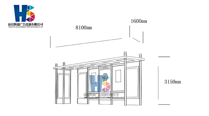 產(chǎn)品外觀 / PRODUCT DETAILS 產(chǎn)品信息 / PRODUCT INFO 【產(chǎn)品名稱】:新款候車亭HS71 【產(chǎn)品系列】:新款候車亭 【產(chǎn)品型號】:HS71 【產(chǎn)品規(guī)格】:長8100mm 寬1600mm 高3150mm 【產(chǎn)品材質(zhì)】:熱鍍鋅鋼板 【使用年限】:10-15年 【詳情致電】:181-5189-0417、157-5170-8886 備注:產(chǎn)品可根據(jù)用戶需求選用材質(zhì)、顏色及配件,個性化定制。 1、表面采用靜電噴塑(氟碳烤漆/搪瓷處理) 2、頂棚采用100*100*1.5mm、100*150*2mm鍍鋅管,3mm鍍鋅板激光切割件、1.5mm鍍鋅板焊接骨架,鋪1mm鍍鋅板(10mm陽光板) 3、立柱采用150*150*3mm鍍鋅管 4、箱體采用1.5mm鍍鋅板折彎焊接成型,門框采用全玻鋁合金型材,視窗采用6mm鋼化玻璃 5、照明電器采用LED燈粒 產(chǎn)品尺寸 / PRODUCT SIZE 關(guān)于輝盛 / 為社會分擔(dān)責(zé)任,為客戶創(chuàng)造價值 宿遷輝盛廣告設(shè)備有限公司是一家集設(shè)計、研發(fā)、生產(chǎn)為一體的城市公共設(shè)施生產(chǎn)型企業(yè)。主要產(chǎn)品有:候車公交亭、公交站臺、閱報欄、路名牌、垃圾箱、燈箱等市政設(shè)施系列產(chǎn)品和工程配套設(shè)施系列產(chǎn)品,現(xiàn)有高級技師30多人,高級職稱設(shè)計人員10人,是一家具有自主開發(fā)和設(shè)計能力的以公交亭、智能公交為主導(dǎo)的綜合性城市公共設(shè)施制造企業(yè)。為了進一步改善生產(chǎn)工藝,提高產(chǎn)品質(zhì)量,公司引進了先進生產(chǎn)設(shè)備,包括立臥式加工中心,工業(yè)涂裝流水線,CNC車床,線切割機,大型數(shù)控板機,數(shù)控折邊機,數(shù)控沖孔機床,大型折彎機等。公司還專門成立了產(chǎn)品研發(fā)部門,現(xiàn)每年自主開發(fā)或應(yīng)客戶要求設(shè)計推出多款新產(chǎn)品。 榮譽資質(zhì) / ENTERPRISE HONOR