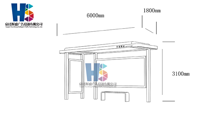 產(chǎn)品外觀 / PRODUCT DETAILS 產(chǎn)品信息 / PRODUCT INFO 【產(chǎn)品名稱(chēng)】:新款候車(chē)亭HS60 【產(chǎn)品系列】:新款候車(chē)亭 【產(chǎn)品型號(hào)】:HS60 【產(chǎn)品規(guī)格】:長(zhǎng)6000mm 寬1800mm 高3100mm 【產(chǎn)品材質(zhì)】:熱鍍鋅鋼板 【使用年限】:10-15年 【詳情致電】:181-5189-0417、157-5170-8886 備注:產(chǎn)品可根據(jù)用戶需求選用材質(zhì)、顏色及配件,個(gè)性化定制。 1、表面采用靜電噴塑(氟碳烤漆/搪瓷處理) 2、頂棚采用100*100*1.5mm、100*150*2mm鍍鋅管,3mm鍍鋅板激光切割件、1.5mm鍍鋅板焊接骨架,鋪1mm鍍鋅板(10mm陽(yáng)光板) 3、立柱采用150*150*3mm鍍鋅管 4、箱體采用1.5mm鍍鋅板折彎焊接成型,門(mén)框采用全玻鋁合金型材,視窗采用6mm鋼化玻璃 5、照明電器采用LED燈粒 產(chǎn)品尺寸 / PRODUCT SIZE 關(guān)于輝盛 / 為社會(huì)分擔(dān)責(zé)任,為客戶創(chuàng)造價(jià)值 宿遷輝盛廣告設(shè)備有限公司是一家集設(shè)計(jì)、研發(fā)、生產(chǎn)為一體的城市公共設(shè)施生產(chǎn)型企業(yè)。主要產(chǎn)品有:候車(chē)公交亭、公交站臺(tái)、閱報(bào)欄、路名牌、垃圾箱、燈箱等市政設(shè)施系列產(chǎn)品和工程配套設(shè)施系列產(chǎn)品,現(xiàn)有高級(jí)技師30多人,高級(jí)職稱(chēng)設(shè)計(jì)人員10人,是一家具有自主開(kāi)發(fā)和設(shè)計(jì)能力的以公交亭、智能公交為主導(dǎo)的綜合性城市公共設(shè)施制造企業(yè)。為了進(jìn)一步改善生產(chǎn)工藝,提高產(chǎn)品質(zhì)量,公司引進(jìn)了先進(jìn)生產(chǎn)設(shè)備,包括立臥式加工中心,工業(yè)涂裝流水線,CNC車(chē)床,線切割機(jī),大型數(shù)控板機(jī),數(shù)控折邊機(jī),數(shù)控沖孔機(jī)床,大型折彎?rùn)C(jī)等。公司還專(zhuān)門(mén)成立了產(chǎn)品研發(fā)部門(mén),現(xiàn)每年自主開(kāi)發(fā)或應(yīng)客戶要求設(shè)計(jì)推出多款新產(chǎn)品。 榮譽(yù)資質(zhì) / ENTERPRISE HONOR