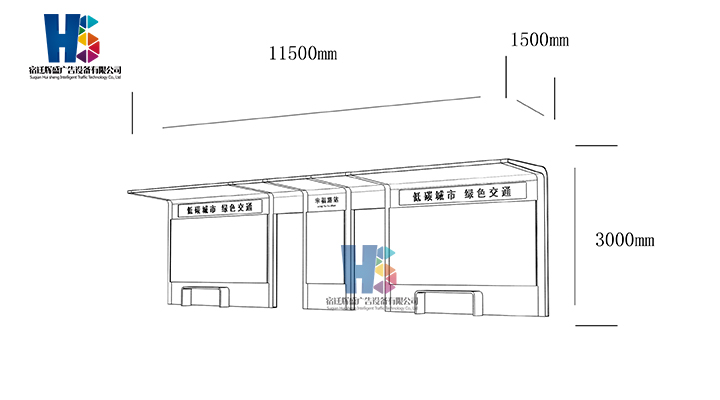 產(chǎn)品外觀 / PRODUCT DETAILS 產(chǎn)品信息 / PRODUCT INFO 【產(chǎn)品名稱】:新款候車亭HS58 【產(chǎn)品系列】:新款候車亭 【產(chǎn)品型號】:HS58 【產(chǎn)品規(guī)格】:長11500mm 寬1500mm 高3000mm 【產(chǎn)品材質】:熱鍍鋅鋼板 【使用年限】:10-15年 【詳情致電】:181-5189-0417、157-5170-8886 備注:產(chǎn)品可根據(jù)用戶需求選用材質、顏色及配件,個性化定制。 1、表面采用靜電噴塑(氟碳烤漆/搪瓷處理) 2、頂棚采用100*100*1.5mm、100*150*2mm鍍鋅管,3mm鍍鋅板激光切割件、1.5mm鍍鋅板焊接骨架,鋪1mm鍍鋅板(10mm陽光板) 3、立柱采用150*150*3mm鍍鋅管 4、箱體采用1.5mm鍍鋅板折彎焊接成型,門框采用全玻鋁合金型材,視窗采用6mm鋼化玻璃 5、照明電器采用LED燈粒 產(chǎn)品尺寸 / PRODUCT SIZE 關于輝盛 / 為社會分擔責任,為客戶創(chuàng)造價值 宿遷輝盛廣告設備有限公司是一家集設計、研發(fā)、生產(chǎn)為一體的城市公共設施生產(chǎn)型企業(yè)。主要產(chǎn)品有:候車公交亭、公交站臺、閱報欄、路名牌、垃圾箱、燈箱等市政設施系列產(chǎn)品和工程配套設施系列產(chǎn)品,現(xiàn)有高級技師30多人,高級職稱設計人員10人,是一家具有自主開發(fā)和設計能力的以公交亭、智能公交為主導的綜合性城市公共設施制造企業(yè)。為了進一步改善生產(chǎn)工藝,提高產(chǎn)品質量,公司引進了先進生產(chǎn)設備,包括立臥式加工中心,工業(yè)涂裝流水線,CNC車床,線切割機,大型數(shù)控板機,數(shù)控折邊機,數(shù)控沖孔機床,大型折彎機等。公司還專門成立了產(chǎn)品研發(fā)部門,現(xiàn)每年自主開發(fā)或應客戶要求設計推出多款新產(chǎn)品。 榮譽資質 / ENTERPRISE HONOR