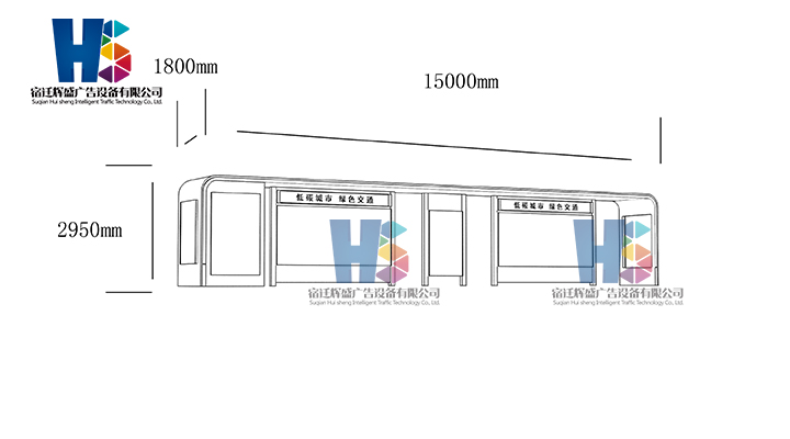 產(chǎn)品外觀 / PRODUCT DETAILS 產(chǎn)品信息 / PRODUCT INFO 【產(chǎn)品名稱】:新款候車亭HS53 【產(chǎn)品系列】:新款候車亭 【產(chǎn)品型號(hào)】:HS53 【產(chǎn)品規(guī)格】:長(zhǎng)15000mm 寬1800mm 高2950mm 【產(chǎn)品材質(zhì)】:熱鍍鋅鋼板 【使用年限】:10-15年 【詳情致電】:181-5189-0417、157-5170-8886 備注:產(chǎn)品可根據(jù)用戶需求選用材質(zhì)、顏色及配件,個(gè)性化定制。 1、表面采用靜電噴塑(氟碳烤漆/搪瓷處理) 2、頂棚采用100*100*1.5mm、100*150*2mm鍍鋅管,3mm鍍鋅板激光切割件、1.5mm鍍鋅板焊接骨架,鋪1mm鍍鋅板(10mm陽(yáng)光板) 3、立柱采用150*150*3mm鍍鋅管 4、箱體采用1.5mm鍍鋅板折彎焊接成型,門框采用全玻鋁合金型材,視窗采用6mm鋼化玻璃 5、照明電器采用LED燈粒 產(chǎn)品尺寸 / PRODUCT SIZE 關(guān)于輝盛 / 為社會(huì)分擔(dān)責(zé)任,為客戶創(chuàng)造價(jià)值 宿遷輝盛廣告設(shè)備有限公司是一家集設(shè)計(jì)、研發(fā)、生產(chǎn)為一體的城市公共設(shè)施生產(chǎn)型企業(yè)。主要產(chǎn)品有:候車公交亭、公交站臺(tái)、閱報(bào)欄、路名牌、垃圾箱、燈箱等市政設(shè)施系列產(chǎn)品和工程配套設(shè)施系列產(chǎn)品,現(xiàn)有高級(jí)技師30多人,高級(jí)職稱設(shè)計(jì)人員10人,是一家具有自主開(kāi)發(fā)和設(shè)計(jì)能力的以公交亭、智能公交為主導(dǎo)的綜合性城市公共設(shè)施制造企業(yè)。為了進(jìn)一步改善生產(chǎn)工藝,提高產(chǎn)品質(zhì)量,公司引進(jìn)了先進(jìn)生產(chǎn)設(shè)備,包括立臥式加工中心,工業(yè)涂裝流水線,CNC車床,線切割機(jī),大型數(shù)控板機(jī),數(shù)控折邊機(jī),數(shù)控沖孔機(jī)床,大型折彎?rùn)C(jī)等。公司還專門成立了產(chǎn)品研發(fā)部門,現(xiàn)每年自主開(kāi)發(fā)或應(yīng)客戶要求設(shè)計(jì)推出多款新產(chǎn)品。 榮譽(yù)資質(zhì) / ENTERPRISE HONOR