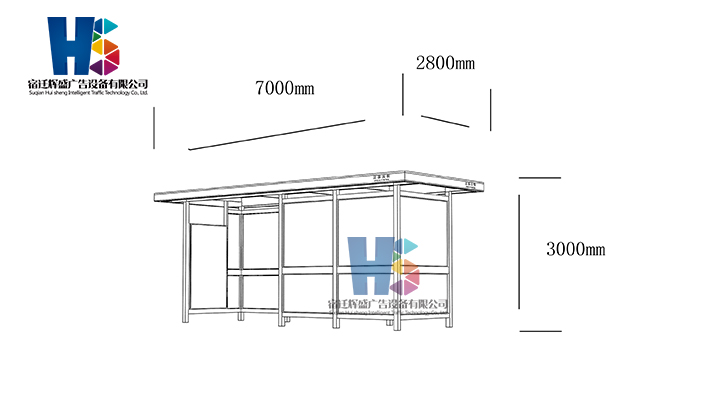 產品外觀 / PRODUCT DETAILS 產品信息 / PRODUCT INFO 【產品名稱】:新款候車亭HS49 【產品系列】:新款候車亭 【產品型號】:HS49 【產品規(guī)格】:長7000mm 寬2800mm 高3000mm 【產品材質】:熱鍍鋅鋼板 【使用年限】:10-15年 【詳情致電】:181-5189-0417、157-5170-8886 備注:產品可根據用戶需求選用材質、顏色及配件,個性化定制。 1、表面采用靜電噴塑(氟碳烤漆/搪瓷處理) 2、頂棚采用100*100*1.5mm、100*150*2mm鍍鋅管,3mm鍍鋅板激光切割件、1.5mm鍍鋅板焊接骨架,鋪1mm鍍鋅板(10mm陽光板) 3、立柱采用150*150*3mm鍍鋅管 4、箱體采用1.5mm鍍鋅板折彎焊接成型,門框采用全玻鋁合金型材,視窗采用6mm鋼化玻璃 5、照明電器采用LED燈粒 產品尺寸 / PRODUCT SIZE 關于輝盛 / 為社會分擔責任,為客戶創(chuàng)造價值 宿遷輝盛廣告設備有限公司是一家集設計、研發(fā)、生產為一體的城市公共設施生產型企業(yè)。主要產品有:候車公交亭、公交站臺、閱報欄、路名牌、垃圾箱、燈箱等市政設施系列產品和工程配套設施系列產品,現有高級技師30多人,高級職稱設計人員10人,是一家具有自主開發(fā)和設計能力的以公交亭、智能公交為主導的綜合性城市公共設施制造企業(yè)。為了進一步改善生產工藝,提高產品質量,公司引進了先進生產設備,包括立臥式加工中心,工業(yè)涂裝流水線,CNC車床,線切割機,大型數控板機,數控折邊機,數控沖孔機床,大型折彎機等。公司還專門成立了產品研發(fā)部門,現每年自主開發(fā)或應客戶要求設計推出多款新產品。 榮譽資質 / ENTERPRISE HONOR