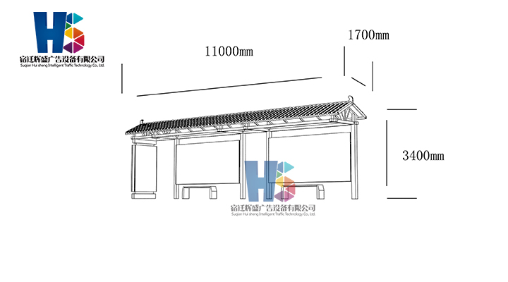 產(chǎn)品外觀 / PRODUCT DETAILS 產(chǎn)品信息 / PRODUCT INFO 【產(chǎn)品名稱】:新款候車亭HS45 【產(chǎn)品系列】:新款候車亭 【產(chǎn)品型號】:HS45 【產(chǎn)品規(guī)格】:長11000mm 寬1700mm 高3400mm 【產(chǎn)品材質(zhì)】:熱鍍鋅鋼板 【使用年限】:10-15年 【詳情致電】:181-5189-0417、157-5170-8886 備注:產(chǎn)品可根據(jù)用戶需求選用材質(zhì)、顏色及配件,個性化定制。 1、表面采用靜電噴塑(氟碳烤漆/搪瓷處理) 2、頂棚采用100*100*1.5mm、100*150*2mm鍍鋅管,3mm鍍鋅板激光切割件、1.5mm鍍鋅板焊接骨架,鋪1mm鍍鋅板(10mm陽光板) 3、立柱采用150*150*3mm鍍鋅管 4、箱體采用1.5mm鍍鋅板折彎焊接成型,門框采用全玻鋁合金型材,視窗采用6mm鋼化玻璃 5、照明電器采用LED燈粒 產(chǎn)品尺寸 / PRODUCT SIZE 關(guān)于輝盛 / 為社會分擔(dān)責(zé)任,為客戶創(chuàng)造價值 宿遷輝盛廣告設(shè)備有限公司是一家集設(shè)計、研發(fā)、生產(chǎn)為一體的城市公共設(shè)施生產(chǎn)型企業(yè)。主要產(chǎn)品有:候車公交亭、公交站臺、閱報欄、路名牌、垃圾箱、燈箱等市政設(shè)施系列產(chǎn)品和工程配套設(shè)施系列產(chǎn)品,現(xiàn)有高級技師30多人,高級職稱設(shè)計人員10人,是一家具有自主開發(fā)和設(shè)計能力的以公交亭、智能公交為主導(dǎo)的綜合性城市公共設(shè)施制造企業(yè)。為了進(jìn)一步改善生產(chǎn)工藝,提高產(chǎn)品質(zhì)量,公司引進(jìn)了先進(jìn)生產(chǎn)設(shè)備,包括立臥式加工中心,工業(yè)涂裝流水線,CNC車床,線切割機,大型數(shù)控板機,數(shù)控折邊機,數(shù)控沖孔機床,大型折彎機等。公司還專門成立了產(chǎn)品研發(fā)部門,現(xiàn)每年自主開發(fā)或應(yīng)客戶要求設(shè)計推出多款新產(chǎn)品。 榮譽資質(zhì) / ENTERPRISE HONOR