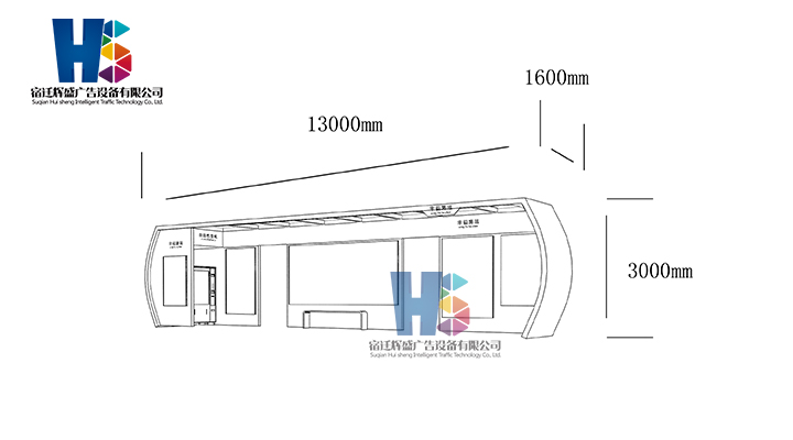 產(chǎn)品外觀 / PRODUCT DETAILS 產(chǎn)品信息 / PRODUCT INFO 【產(chǎn)品名稱】:新款候車亭HS40 【產(chǎn)品系列】:新款候車亭 【產(chǎn)品型號(hào)】:HS40 【產(chǎn)品規(guī)格】:長(zhǎng)13000mm 寬1600mm 高3000mm 【產(chǎn)品材質(zhì)】:熱鍍鋅鋼板 【使用年限】:10-15年 【詳情致電】:181-5189-0417、157-5170-8886 備注:產(chǎn)品可根據(jù)用戶需求選用材質(zhì)、顏色及配件,個(gè)性化定制。 1、表面采用靜電噴塑(氟碳烤漆/搪瓷處理) 2、頂棚采用100*100*1.5mm、100*150*2mm鍍鋅管,3mm鍍鋅板激光切割件、1.5mm鍍鋅板焊接骨架,鋪1mm鍍鋅板(10mm陽光板) 3、立柱采用150*150*3mm鍍鋅管 4、箱體采用1.5mm鍍鋅板折彎焊接成型,門框采用全玻鋁合金型材,視窗采用6mm鋼化玻璃 5、照明電器采用LED燈粒 產(chǎn)品尺寸 / PRODUCT SIZE 關(guān)于輝盛 / 為社會(huì)分擔(dān)責(zé)任,為客戶創(chuàng)造價(jià)值 宿遷輝盛廣告設(shè)備有限公司是一家集設(shè)計(jì)、研發(fā)、生產(chǎn)為一體的城市公共設(shè)施生產(chǎn)型企業(yè)。主要產(chǎn)品有:候車公交亭、公交站臺(tái)、閱報(bào)欄、路名牌、垃圾箱、燈箱等市政設(shè)施系列產(chǎn)品和工程配套設(shè)施系列產(chǎn)品,現(xiàn)有高級(jí)技師30多人,高級(jí)職稱設(shè)計(jì)人員10人,是一家具有自主開發(fā)和設(shè)計(jì)能力的以公交亭、智能公交為主導(dǎo)的綜合性城市公共設(shè)施制造企業(yè)。為了進(jìn)一步改善生產(chǎn)工藝,提高產(chǎn)品質(zhì)量,公司引進(jìn)了先進(jìn)生產(chǎn)設(shè)備,包括立臥式加工中心,工業(yè)涂裝流水線,CNC車床,線切割機(jī),大型數(shù)控板機(jī),數(shù)控折邊機(jī),數(shù)控沖孔機(jī)床,大型折彎?rùn)C(jī)等。公司還專門成立了產(chǎn)品研發(fā)部門,現(xiàn)每年自主開發(fā)或應(yīng)客戶要求設(shè)計(jì)推出多款新產(chǎn)品。 榮譽(yù)資質(zhì) / ENTERPRISE HONOR