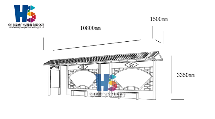 產(chǎn)品外觀 / PRODUCT DETAILS 產(chǎn)品信息 / PRODUCT INFO 【產(chǎn)品名稱】:新款候車亭HS35 【產(chǎn)品系列】:新款候車亭 【產(chǎn)品型號(hào)】:HS35 【產(chǎn)品規(guī)格】:長(zhǎng)10800mm 寬1500mm 高3350mm 【產(chǎn)品材質(zhì)】:熱鍍鋅鋼板 【使用年限】:10-15年 【詳情致電】:181-5189-0417、157-5170-8886 備注:產(chǎn)品可根據(jù)用戶需求選用材質(zhì)、顏色及配件,個(gè)性化定制。 1、表面采用靜電噴塑(氟碳烤漆/搪瓷處理) 2、頂棚采用100*100*1.5mm、100*150*2mm鍍鋅管,3mm鍍鋅板激光切割件、1.5mm鍍鋅板焊接骨架,鋪1mm鍍鋅板(10mm陽(yáng)光板) 3、立柱采用150*150*3mm鍍鋅管 4、箱體采用1.5mm鍍鋅板折彎焊接成型,門框采用全玻鋁合金型材,視窗采用6mm鋼化玻璃 5、照明電器采用LED燈粒 產(chǎn)品尺寸 / PRODUCT SIZE 關(guān)于輝盛 / 為社會(huì)分擔(dān)責(zé)任,為客戶創(chuàng)造價(jià)值 宿遷輝盛廣告設(shè)備有限公司是一家集設(shè)計(jì)、研發(fā)、生產(chǎn)為一體的城市公共設(shè)施生產(chǎn)型企業(yè)。主要產(chǎn)品有:候車公交亭、公交站臺(tái)、閱報(bào)欄、路名牌、垃圾箱、燈箱等市政設(shè)施系列產(chǎn)品和工程配套設(shè)施系列產(chǎn)品,現(xiàn)有高級(jí)技師30多人,高級(jí)職稱設(shè)計(jì)人員10人,是一家具有自主開(kāi)發(fā)和設(shè)計(jì)能力的以公交亭、智能公交為主導(dǎo)的綜合性城市公共設(shè)施制造企業(yè)。為了進(jìn)一步改善生產(chǎn)工藝,提高產(chǎn)品質(zhì)量,公司引進(jìn)了先進(jìn)生產(chǎn)設(shè)備,包括立臥式加工中心,工業(yè)涂裝流水線,CNC車床,線切割機(jī),大型數(shù)控板機(jī),數(shù)控折邊機(jī),數(shù)控沖孔機(jī)床,大型折彎?rùn)C(jī)等。公司還專門成立了產(chǎn)品研發(fā)部門,現(xiàn)每年自主開(kāi)發(fā)或應(yīng)客戶要求設(shè)計(jì)推出多款新產(chǎn)品。 榮譽(yù)資質(zhì) / ENTERPRISE HONOR