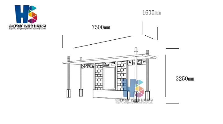 產(chǎn)品外觀 / PRODUCT DETAILS 產(chǎn)品信息 / PRODUCT INFO 【產(chǎn)品名稱】:新款候車亭HS33 【產(chǎn)品系列】:新款候車亭 【產(chǎn)品型號】:HS33 【產(chǎn)品規(guī)格】:長7500mm 寬1600mm 高3250mm 【產(chǎn)品材質】:熱鍍鋅鋼板 【使用年限】:10-15年 【詳情致電】:181-5189-0417、157-5170-8886 備注:產(chǎn)品可根據(jù)用戶需求選用材質、顏色及配件,個性化定制。 1、表面采用靜電噴塑(氟碳烤漆/搪瓷處理) 2、頂棚采用100*100*1.5mm、100*150*2mm鍍鋅管,3mm鍍鋅板激光切割件、1.5mm鍍鋅板焊接骨架,鋪1mm鍍鋅板(10mm陽光板) 3、立柱采用150*150*3mm鍍鋅管 4、箱體采用1.5mm鍍鋅板折彎焊接成型,門框采用全玻鋁合金型材,視窗采用6mm鋼化玻璃 5、照明電器采用LED燈粒 產(chǎn)品尺寸 / PRODUCT SIZE 關于輝盛 / 為社會分擔責任,為客戶創(chuàng)造價值 宿遷輝盛廣告設備有限公司是一家集設計、研發(fā)、生產(chǎn)為一體的城市公共設施生產(chǎn)型企業(yè)。主要產(chǎn)品有:候車公交亭、公交站臺、閱報欄、路名牌、垃圾箱、燈箱等市政設施系列產(chǎn)品和工程配套設施系列產(chǎn)品,現(xiàn)有高級技師30多人,高級職稱設計人員10人,是一家具有自主開發(fā)和設計能力的以公交亭、智能公交為主導的綜合性城市公共設施制造企業(yè)。為了進一步改善生產(chǎn)工藝,提高產(chǎn)品質量,公司引進了先進生產(chǎn)設備,包括立臥式加工中心,工業(yè)涂裝流水線,CNC車床,線切割機,大型數(shù)控板機,數(shù)控折邊機,數(shù)控沖孔機床,大型折彎機等。公司還專門成立了產(chǎn)品研發(fā)部門,現(xiàn)每年自主開發(fā)或應客戶要求設計推出多款新產(chǎn)品。 榮譽資質 / ENTERPRISE HONOR