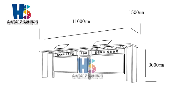產(chǎn)品外觀 / PRODUCT DETAILS 產(chǎn)品信息 / PRODUCT INFO 【產(chǎn)品名稱】:新款候車亭HS21 【產(chǎn)品系列】:新款候車亭 【產(chǎn)品型號】:HS21 【產(chǎn)品規(guī)格】:長11000mm 寬1500mm 高3000mm 【產(chǎn)品材質(zhì)】:熱鍍鋅鋼板 【使用年限】:10-15年 【詳情致電】:181-5189-0417、157-5170-8886 備注:產(chǎn)品可根據(jù)用戶需求選用材質(zhì)、顏色及配件,個性化定制。 1、表面采用靜電噴塑(氟碳烤漆/搪瓷處理) 2、頂棚采用100*100*1.5mm、100*150*2mm鍍鋅管,3mm鍍鋅板激光切割件、1.5mm鍍鋅板焊接骨架,鋪1mm鍍鋅板(10mm陽光板) 3、立柱采用150*150*3mm鍍鋅管 4、箱體采用1.5mm鍍鋅板折彎焊接成型,門框采用全玻鋁合金型材,視窗采用6mm鋼化玻璃 5、照明電器采用LED燈粒 產(chǎn)品尺寸 / PRODUCT SIZE 關于輝盛 / 為社會分擔責任,為客戶創(chuàng)造價值 宿遷輝盛廣告設備有限公司是一家集設計、研發(fā)、生產(chǎn)為一體的城市公共設施生產(chǎn)型企業(yè)。主要產(chǎn)品有:候車公交亭、公交站臺、閱報欄、路名牌、垃圾箱、燈箱等市政設施系列產(chǎn)品和工程配套設施系列產(chǎn)品,現(xiàn)有高級技師30多人,高級職稱設計人員10人,是一家具有自主開發(fā)和設計能力的以公交亭、智能公交為主導的綜合性城市公共設施制造企業(yè)。為了進一步改善生產(chǎn)工藝,提高產(chǎn)品質(zhì)量,公司引進了先進生產(chǎn)設備,包括立臥式加工中心,工業(yè)涂裝流水線,CNC車床,線切割機,大型數(shù)控板機,數(shù)控折邊機,數(shù)控沖孔機床,大型折彎機等。公司還專門成立了產(chǎn)品研發(fā)部門,現(xiàn)每年自主開發(fā)或應客戶要求設計推出多款新產(chǎn)品。 榮譽資質(zhì) / ENTERPRISE HONOR