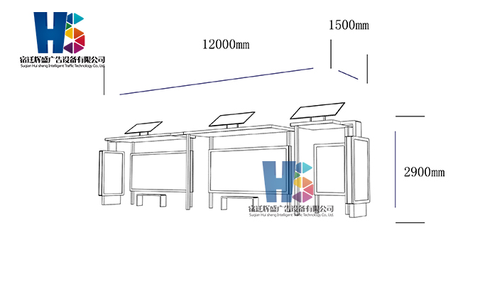產(chǎn)品外觀 / PRODUCT DETAILS 產(chǎn)品信息 / PRODUCT INFO 【產(chǎn)品名稱】:新款候車亭HS17 【產(chǎn)品系列】:新款候車亭 【產(chǎn)品型號】:HS17 【產(chǎn)品規(guī)格】:長12000mm 寬1500mm 高2900mm 【產(chǎn)品材質(zhì)】:熱鍍鋅鋼板 【使用年限】:10-15年 【詳情致電】:181-5189-0417、157-5170-8886 備注:產(chǎn)品可根據(jù)用戶需求選用材質(zhì)、顏色及配件,個性化定制。 1、表面采用靜電噴塑(氟碳烤漆/搪瓷處理) 2、頂棚采用100*100*1.5mm、100*150*2mm鍍鋅管,3mm鍍鋅板激光切割件、1.5mm鍍鋅板焊接骨架,鋪1mm鍍鋅板(10mm陽光板) 3、立柱采用150*150*3mm鍍鋅管 4、箱體采用1.5mm鍍鋅板折彎焊接成型,門框采用全玻鋁合金型材,視窗采用6mm鋼化玻璃 5、照明電器采用LED燈粒 產(chǎn)品尺寸 / PRODUCT SIZE 關(guān)于輝盛 / 為社會分擔(dān)責(zé)任,為客戶創(chuàng)造價值 宿遷輝盛廣告設(shè)備有限公司是一家集設(shè)計、研發(fā)、生產(chǎn)為一體的城市公共設(shè)施生產(chǎn)型企業(yè)。主要產(chǎn)品有:候車公交亭、公交站臺、閱報欄、路名牌、垃圾箱、燈箱等市政設(shè)施系列產(chǎn)品和工程配套設(shè)施系列產(chǎn)品,現(xiàn)有高級技師30多人,高級職稱設(shè)計人員10人,是一家具有自主開發(fā)和設(shè)計能力的以公交亭、智能公交為主導(dǎo)的綜合性城市公共設(shè)施制造企業(yè)。為了進(jìn)一步改善生產(chǎn)工藝,提高產(chǎn)品質(zhì)量,公司引進(jìn)了先進(jìn)生產(chǎn)設(shè)備,包括立臥式加工中心,工業(yè)涂裝流水線,CNC車床,線切割機(jī),大型數(shù)控板機(jī),數(shù)控折邊機(jī),數(shù)控沖孔機(jī)床,大型折彎機(jī)等。公司還專門成立了產(chǎn)品研發(fā)部門,現(xiàn)每年自主開發(fā)或應(yīng)客戶要求設(shè)計推出多款新產(chǎn)品。 榮譽(yù)資質(zhì) / ENTERPRISE HONOR