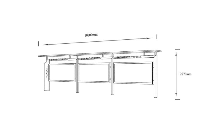 產(chǎn)品外觀 / PRODUCT DETAILS 產(chǎn)品信息 / PRODUCT INFO 【產(chǎn)品名稱】:宣傳欄XCL2-1 【產(chǎn)品系列】:宣傳欄 【產(chǎn)品型號】:XCL2-1 【產(chǎn)品規(guī)格】:長10800mm 高2870mm 【產(chǎn)品材質】:熱鍍鋅鋼板 【使用年限】:10-15年 【詳情致電】:181-5189-0417、157-5170-8886 備注:產(chǎn)品可根據(jù)用戶需求選用材質、顏色及配件,個性化定制。 1、表面采用靜電噴塑(氟碳烤漆/搪瓷處理) 2、頂棚采用100*100*1.5mm、100*150*2mm鍍鋅管,3mm鍍鋅板激光切割件、1.5mm鍍鋅板焊接骨架,鋪1mm鍍鋅板(10mm陽光板) 3、立柱采用150*150*3mm鍍鋅管 4、箱體采用1.5mm鍍鋅板折彎焊接成型,門框采用全玻鋁合金型材,視窗采用6mm鋼化玻璃 5、照明電器采用LED燈粒 產(chǎn)品尺寸 / PRODUCT SIZE 關于輝盛 / 為社會分擔責任,為客戶創(chuàng)造價值 宿遷輝盛廣告設備有限公司是一家集設計、研發(fā)、生產(chǎn)為一體的城市公共設施生產(chǎn)型企業(yè)。主要產(chǎn)品有:候車公交亭、公交站臺、閱報欄、路名牌、垃圾箱、燈箱等市政設施系列產(chǎn)品和工程配套設施系列產(chǎn)品,現(xiàn)有高級技師30多人,高級職稱設計人員10人,是一家具有自主開發(fā)和設計能力的以公交亭、智能公交為主導的綜合性城市公共設施制造企業(yè)。為了進一步改善生產(chǎn)工藝,提高產(chǎn)品質量,公司引進了先進生產(chǎn)設備,包括立臥式加工中心,工業(yè)涂裝流水線,CNC車床,線切割機,大型數(shù)控板機,數(shù)控折邊機,數(shù)控沖孔機床,大型折彎機等。公司還專門成立了產(chǎn)品研發(fā)部門,現(xiàn)每年自主開發(fā)或應客戶要求設計推出多款新產(chǎn)品。 榮譽資質 / ENTERPRISE HONOR