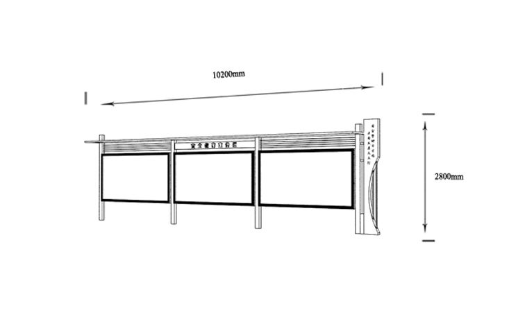 產(chǎn)品外觀 / PRODUCT DETAILS 產(chǎn)品信息 / PRODUCT INFO 【產(chǎn)品名稱】:宣傳欄XCL6-1 【產(chǎn)品系列】:宣傳欄 【產(chǎn)品型號(hào)】:XCL6-1 【產(chǎn)品規(guī)格】:長(zhǎng)10200mm高2800mm 【產(chǎn)品材質(zhì)】:熱鍍鋅鋼板 【使用年限】:10-15年 【詳情致電】:181-5189-0417、157-5170-8886 備注:產(chǎn)品可根據(jù)用戶需求選用材質(zhì)、顏色及配件,個(gè)性化定制。 1、表面采用靜電噴塑(氟碳烤漆/搪瓷處理) 2、頂棚采用100*100*1.5mm、100*150*2mm鍍鋅管,3mm鍍鋅板激光切割件、1.5mm鍍鋅板焊接骨架,鋪1mm鍍鋅板(10mm陽光板) 3、立柱采用150*150*3mm鍍鋅管 4、箱體采用1.5mm鍍鋅板折彎焊接成型,門框采用全玻鋁合金型材,視窗采用6mm鋼化玻璃 5、照明電器采用LED燈粒 產(chǎn)品尺寸 / PRODUCT SIZE 關(guān)于輝盛 / 為社會(huì)分擔(dān)責(zé)任,為客戶創(chuàng)造價(jià)值 宿遷輝盛廣告設(shè)備有限公司是一家集設(shè)計(jì)、研發(fā)、生產(chǎn)為一體的城市公共設(shè)施生產(chǎn)型企業(yè)。主要產(chǎn)品有:候車公交亭、公交站臺(tái)、閱報(bào)欄、路名牌、垃圾箱、燈箱等市政設(shè)施系列產(chǎn)品和工程配套設(shè)施系列產(chǎn)品,現(xiàn)有高級(jí)技師30多人,高級(jí)職稱設(shè)計(jì)人員10人,是一家具有自主開發(fā)和設(shè)計(jì)能力的以公交亭、智能公交為主導(dǎo)的綜合性城市公共設(shè)施制造企業(yè)。為了進(jìn)一步改善生產(chǎn)工藝,提高產(chǎn)品質(zhì)量,公司引進(jìn)了先進(jìn)生產(chǎn)設(shè)備,包括立臥式加工中心,工業(yè)涂裝流水線,CNC車床,線切割機(jī),大型數(shù)控板機(jī),數(shù)控折邊機(jī),數(shù)控沖孔機(jī)床,大型折彎?rùn)C(jī)等。公司還專門成立了產(chǎn)品研發(fā)部門,現(xiàn)每年自主開發(fā)或應(yīng)客戶要求設(shè)計(jì)推出多款新產(chǎn)品。 榮譽(yù)資質(zhì) / ENTERPRISE HONOR