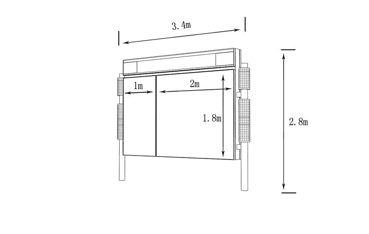 產(chǎn)品外觀 / PRODUCT DETAILS 產(chǎn)品信息 / PRODUCT INFO 【產(chǎn)品名稱】:宣傳欄XCL13-1 【產(chǎn)品系列】:宣傳欄 【產(chǎn)品型號(hào)】:XCL13-1 【產(chǎn)品規(guī)格】:長3400mm高2800mm 【產(chǎn)品材質(zhì)】:熱鍍鋅鋼板 【使用年限】:10-15年 【詳情致電】:181-5189-0417、157-5170-8886 備注:產(chǎn)品可根據(jù)用戶需求選用材質(zhì)、顏色及配件,個(gè)性化定制。 1、表面采用靜電噴塑(氟碳烤漆/搪瓷處理) 2、頂棚采用100*100*1.5mm、100*150*2mm鍍鋅管,3mm鍍鋅板激光切割件、1.5mm鍍鋅板焊接骨架,鋪1mm鍍鋅板(10mm陽光板) 3、立柱采用150*150*3mm鍍鋅管 4、箱體采用1.5mm鍍鋅板折彎焊接成型,門框采用全玻鋁合金型材,視窗采用6mm鋼化玻璃 5、照明電器采用LED燈粒 產(chǎn)品尺寸 / PRODUCT SIZE 關(guān)于輝盛 / 為社會(huì)分擔(dān)責(zé)任,為客戶創(chuàng)造價(jià)值 宿遷輝盛廣告設(shè)備有限公司是一家集設(shè)計(jì)、研發(fā)、生產(chǎn)為一體的城市公共設(shè)施生產(chǎn)型企業(yè)。主要產(chǎn)品有:候車公交亭、公交站臺(tái)、閱報(bào)欄、路名牌、垃圾箱、燈箱等市政設(shè)施系列產(chǎn)品和工程配套設(shè)施系列產(chǎn)品,現(xiàn)有高級(jí)技師30多人,高級(jí)職稱設(shè)計(jì)人員10人,是一家具有自主開發(fā)和設(shè)計(jì)能力的以公交亭、智能公交為主導(dǎo)的綜合性城市公共設(shè)施制造企業(yè)。為了進(jìn)一步改善生產(chǎn)工藝,提高產(chǎn)品質(zhì)量,公司引進(jìn)了先進(jìn)生產(chǎn)設(shè)備,包括立臥式加工中心,工業(yè)涂裝流水線,CNC車床,線切割機(jī),大型數(shù)控板機(jī),數(shù)控折邊機(jī),數(shù)控沖孔機(jī)床,大型折彎機(jī)等。公司還專門成立了產(chǎn)品研發(fā)部門,現(xiàn)每年自主開發(fā)或應(yīng)客戶要求設(shè)計(jì)推出多款新產(chǎn)品。 榮譽(yù)資質(zhì) / ENTERPRISE HONOR